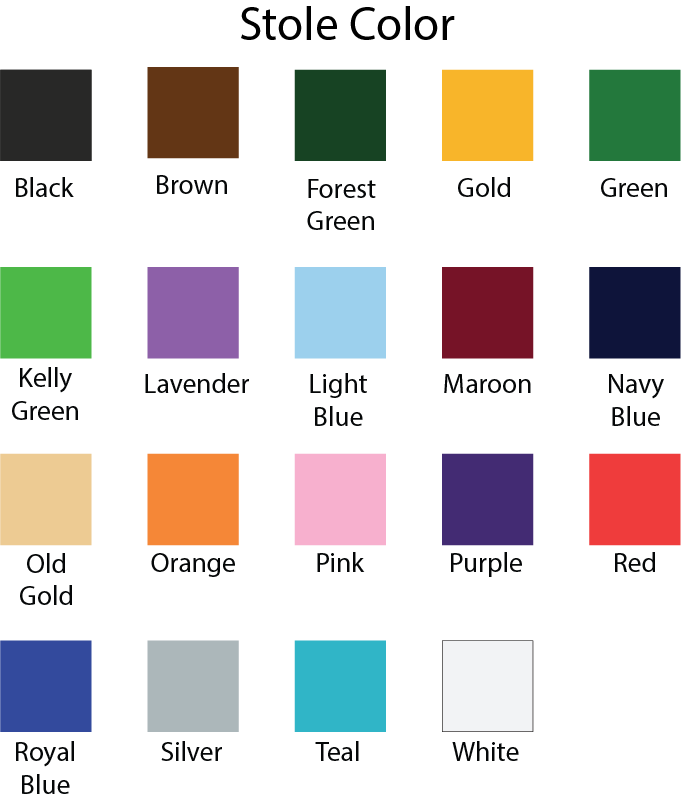 Your beautiful satin-finish stole will be carefully embroidered just for you when you place your order.