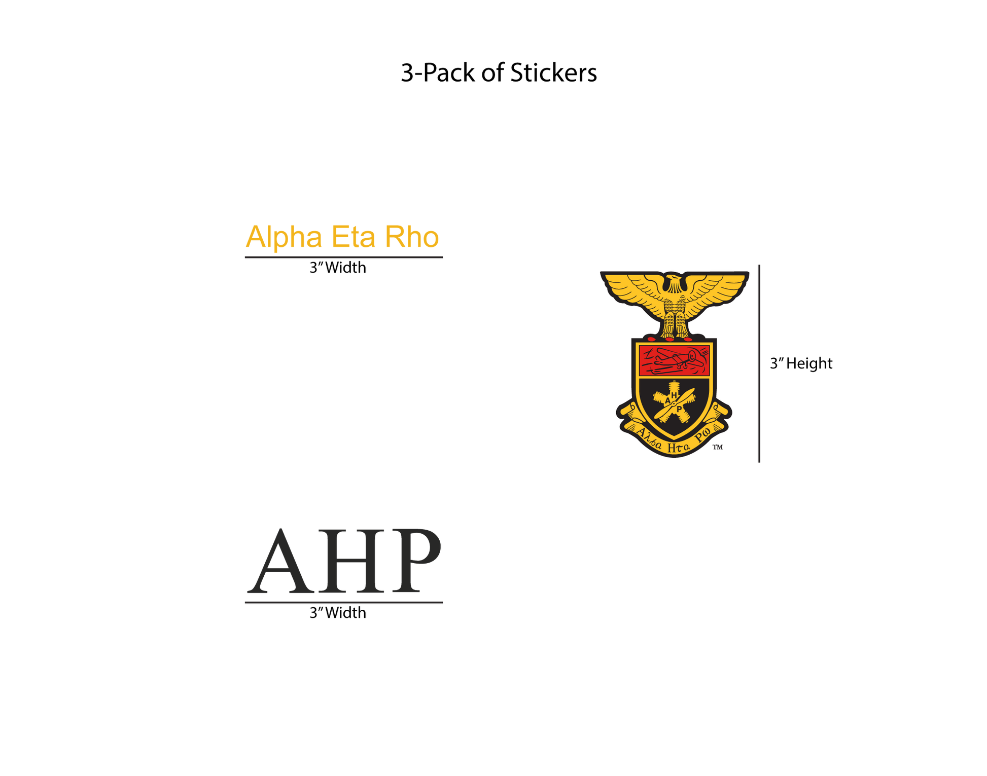 Decorate you laptop, water bottle, or anything else with these durable Alpha Eta Rho stickers. You get one of each of the 3" designs!