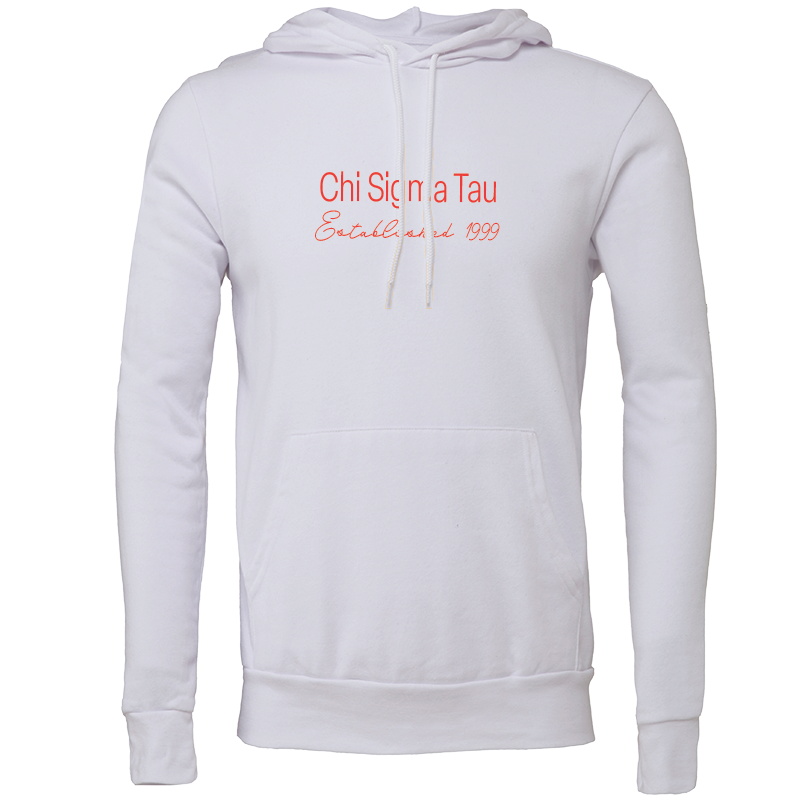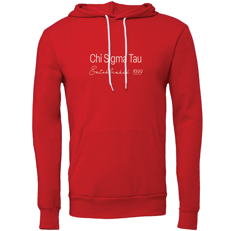 Show your Chi Sigma Tau pride in super-soft hoodies embroidered for you with your organization's name and date of establishment.