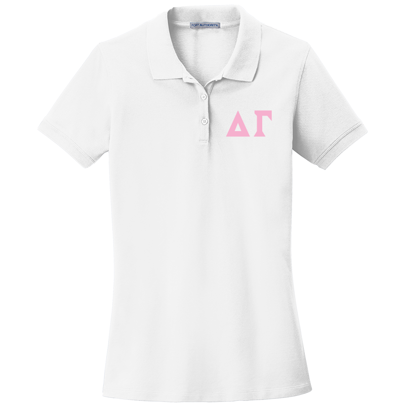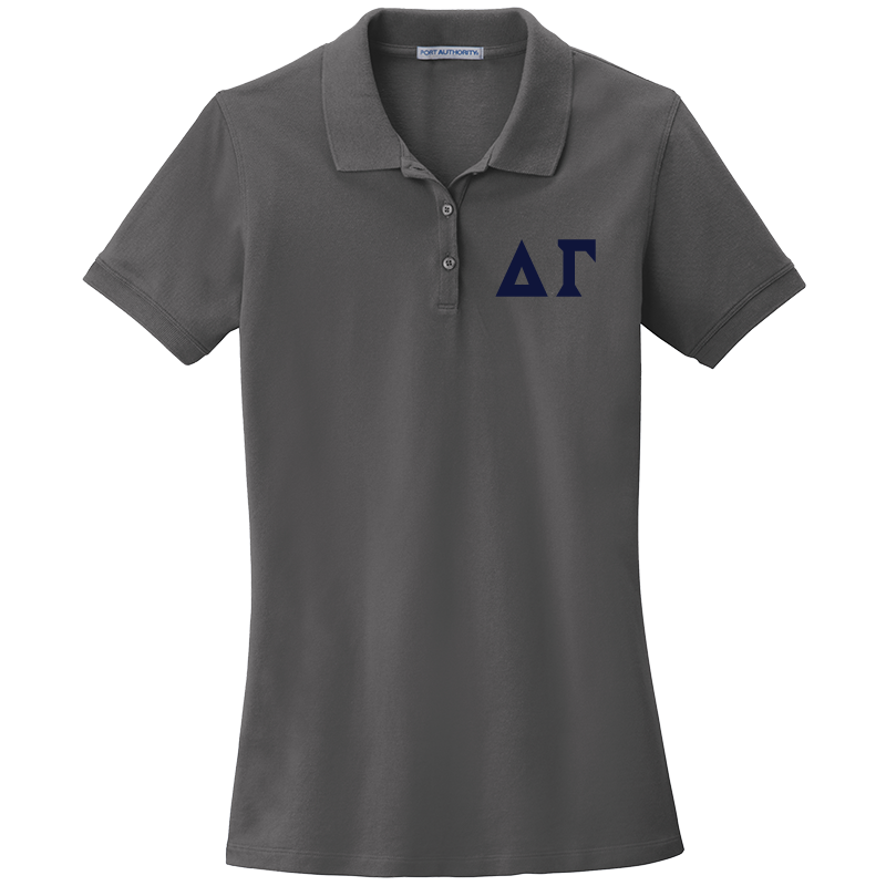 Look great everyday in an embroidered Delta Gamma ladies' polo shirt.