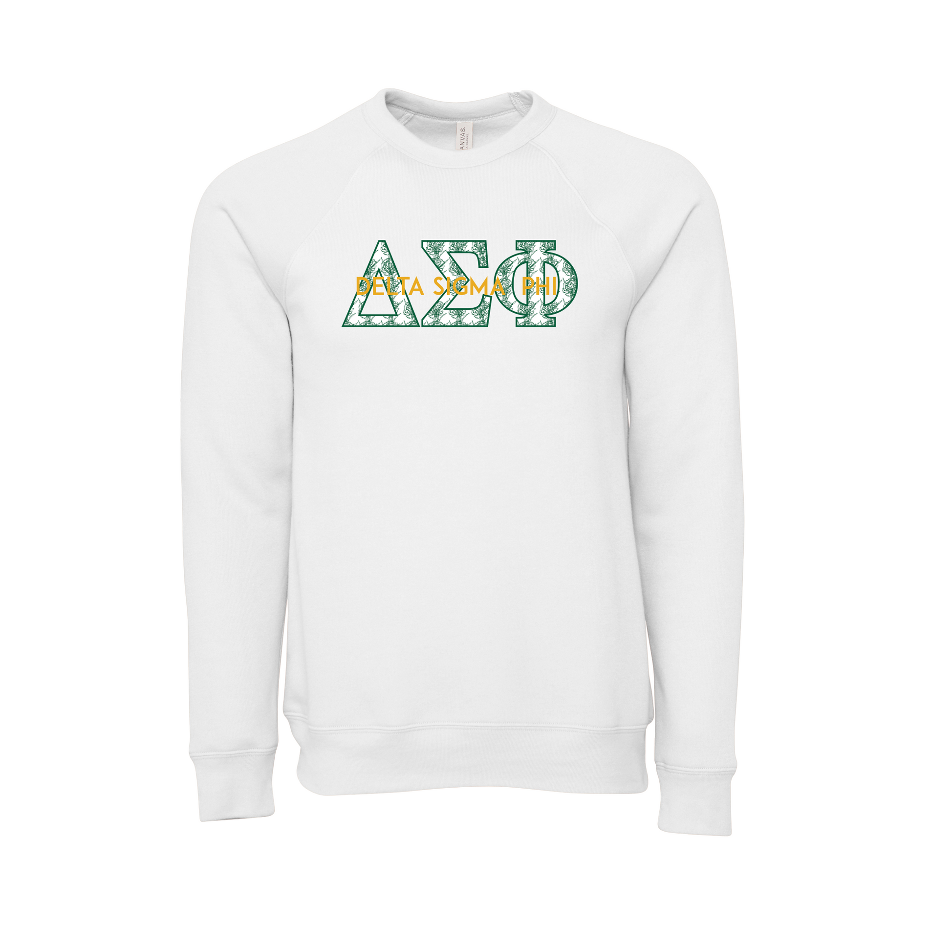 Show off your fraternity membership with a beautiful Delta Sigma Phi applique crewneck sweatshirt.