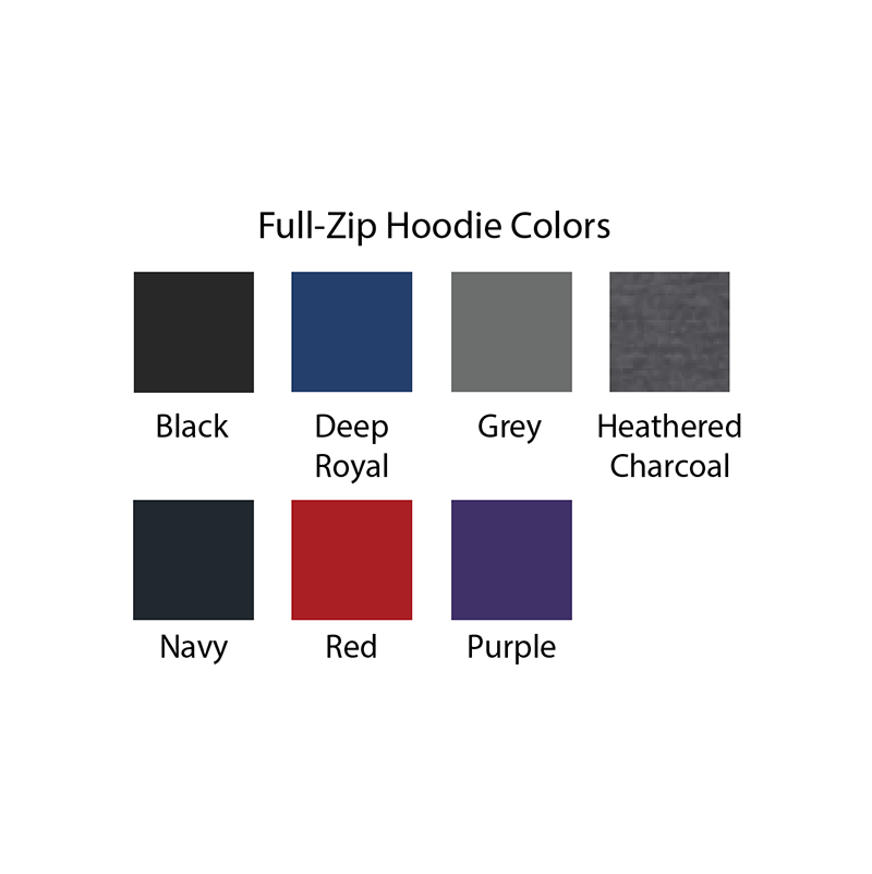 This hoodie is a very soft 50/50 cotton/poly blend and is comfortable enough to wear everyday. The sweatshirts have two front pockets and a very sturdy zipper tough enough to endure years of use.