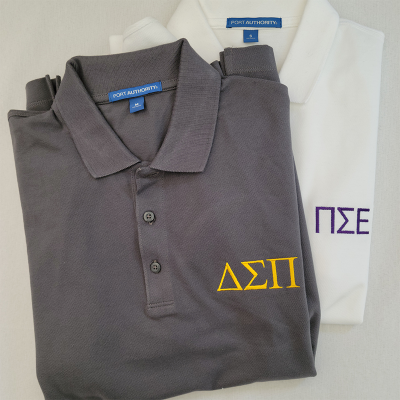 Look great everyday in an embroidered Delta Sigma Pi polo shirt.