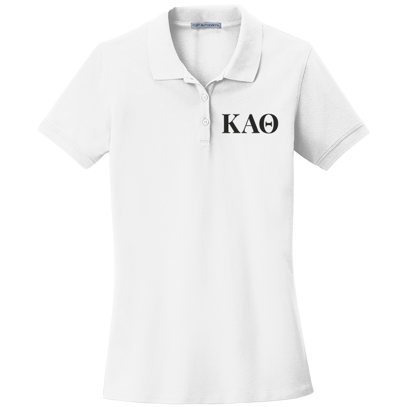 Look great everyday in an embroidered Kappa Alpha Theta ladies' polo shirt.
