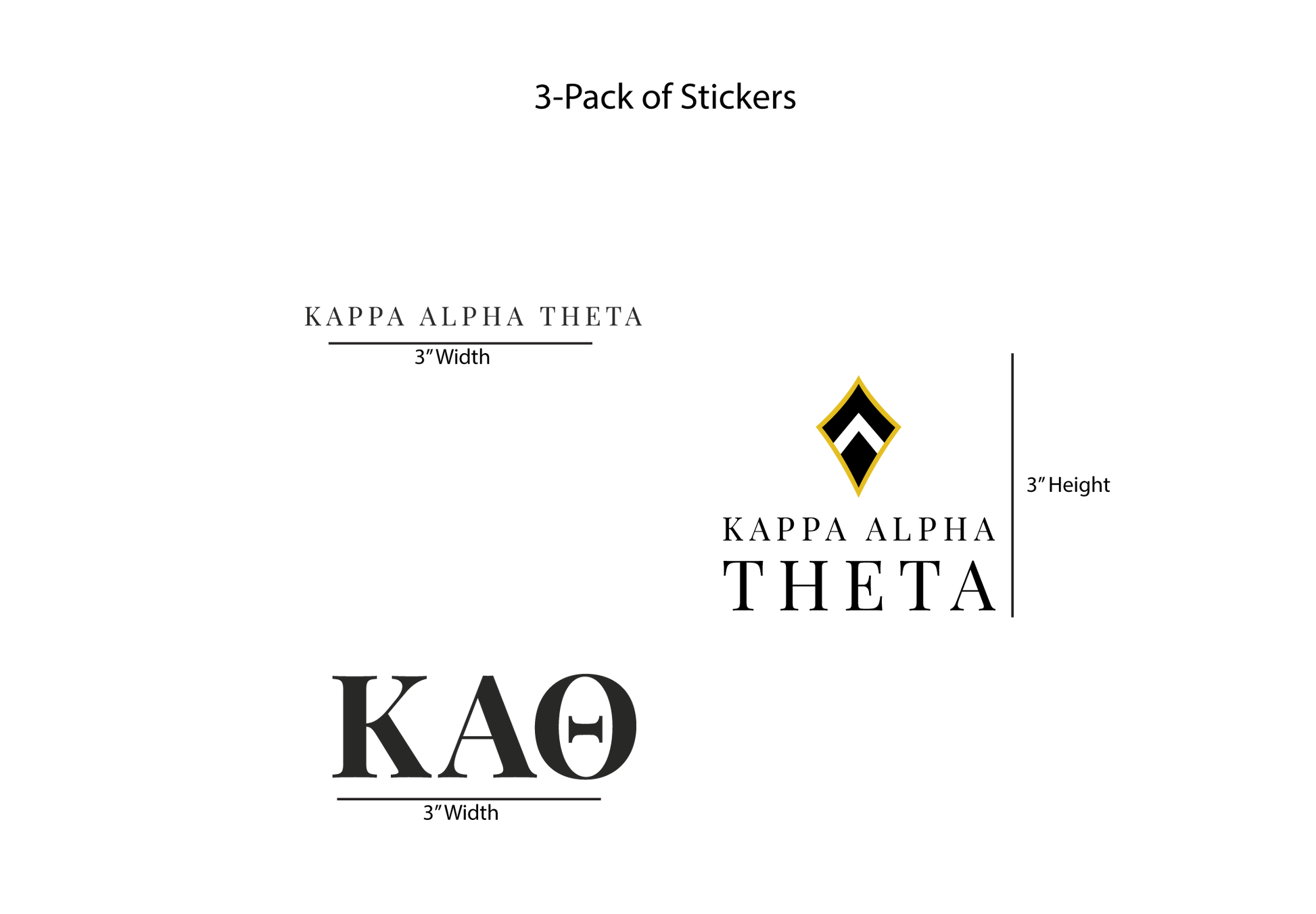 Decorate you laptop, water bottle, or anything else with these durable Kappa Alpha Theta stickers. You get one of each of the 3" designs!