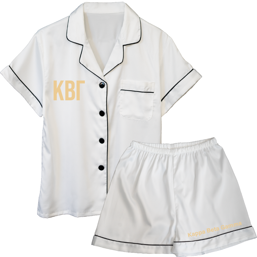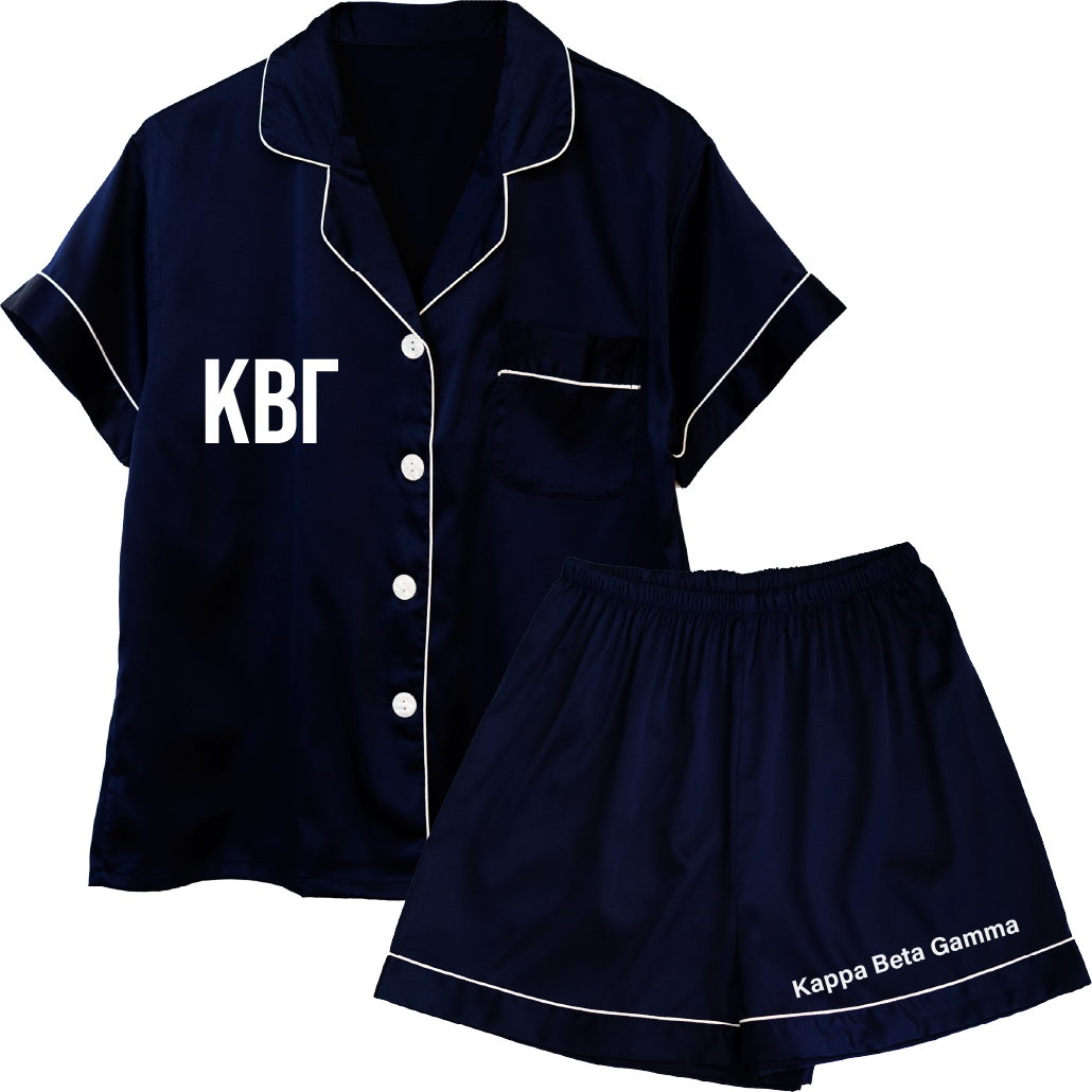 Sleep well in your Kappa Beta Gamma pajama set. These shirt and shorts set are embroidered with your organization's letters and name. And, since they are made from satin material, you are sure to be cozy whenever you wear them.