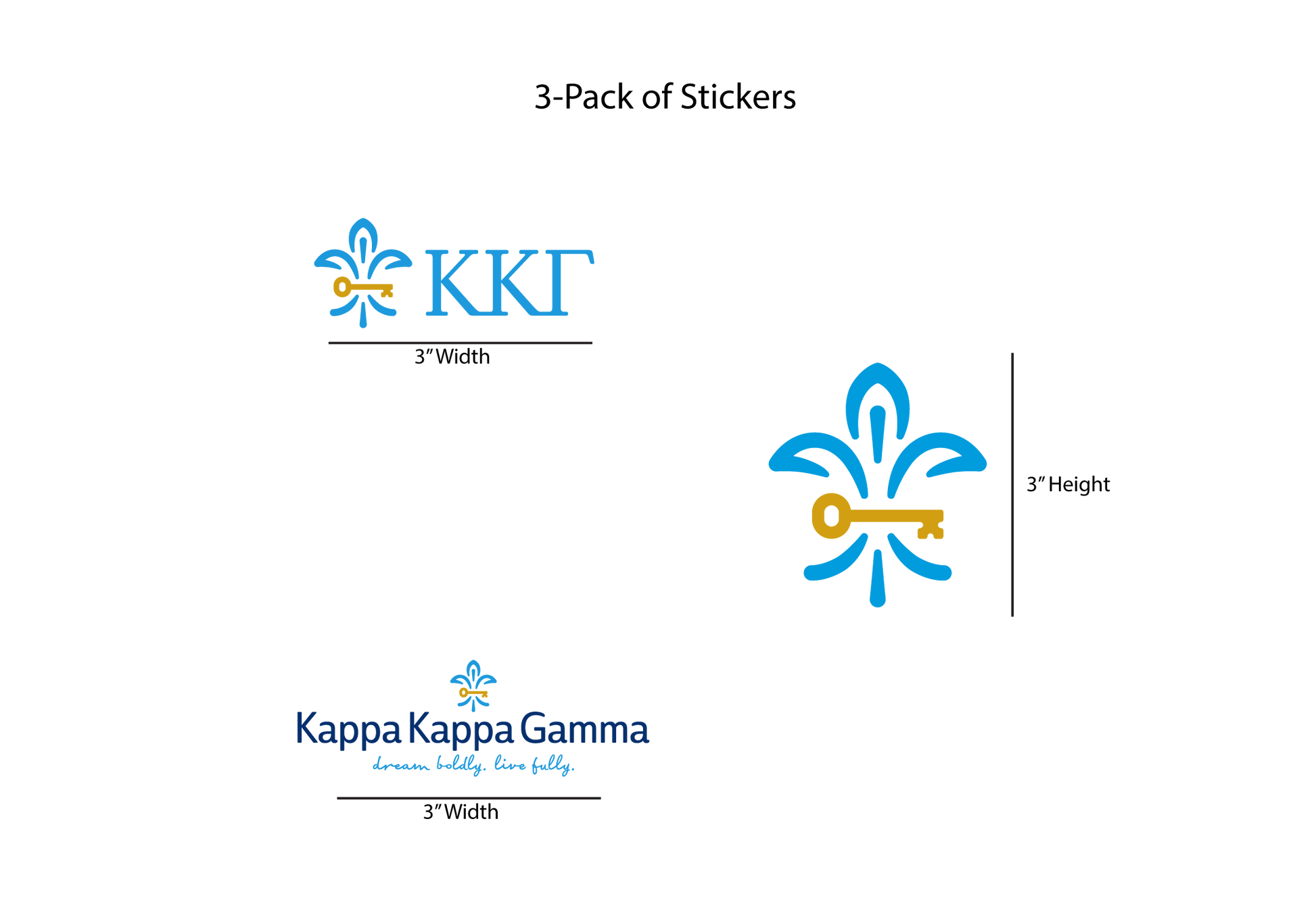 Decorate you laptop, water bottle, or anything else with these durable Kappa Kappa Gamma stickers. You get one of each of the 3" designs!