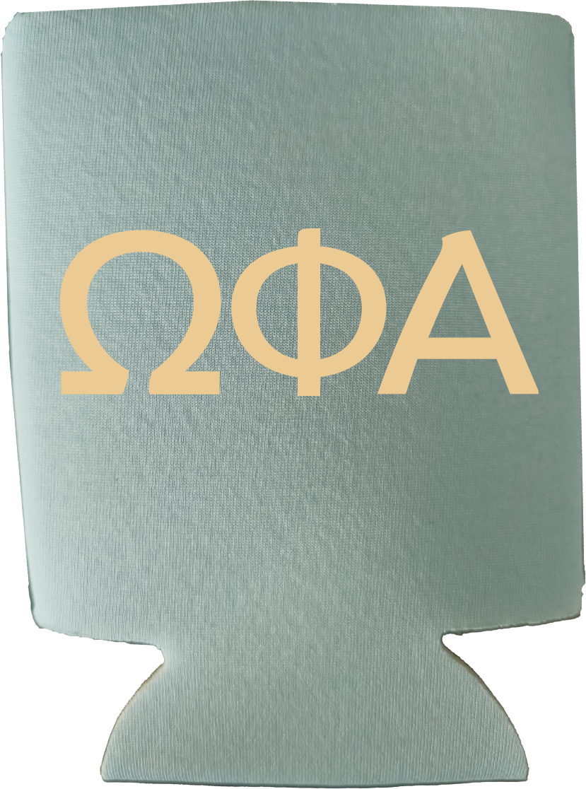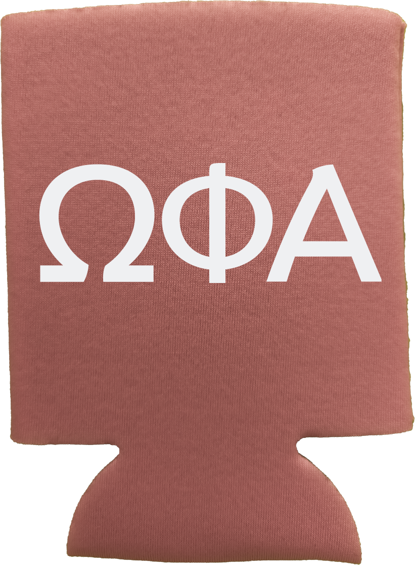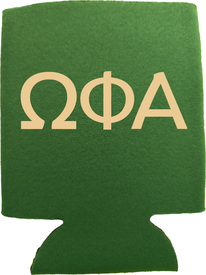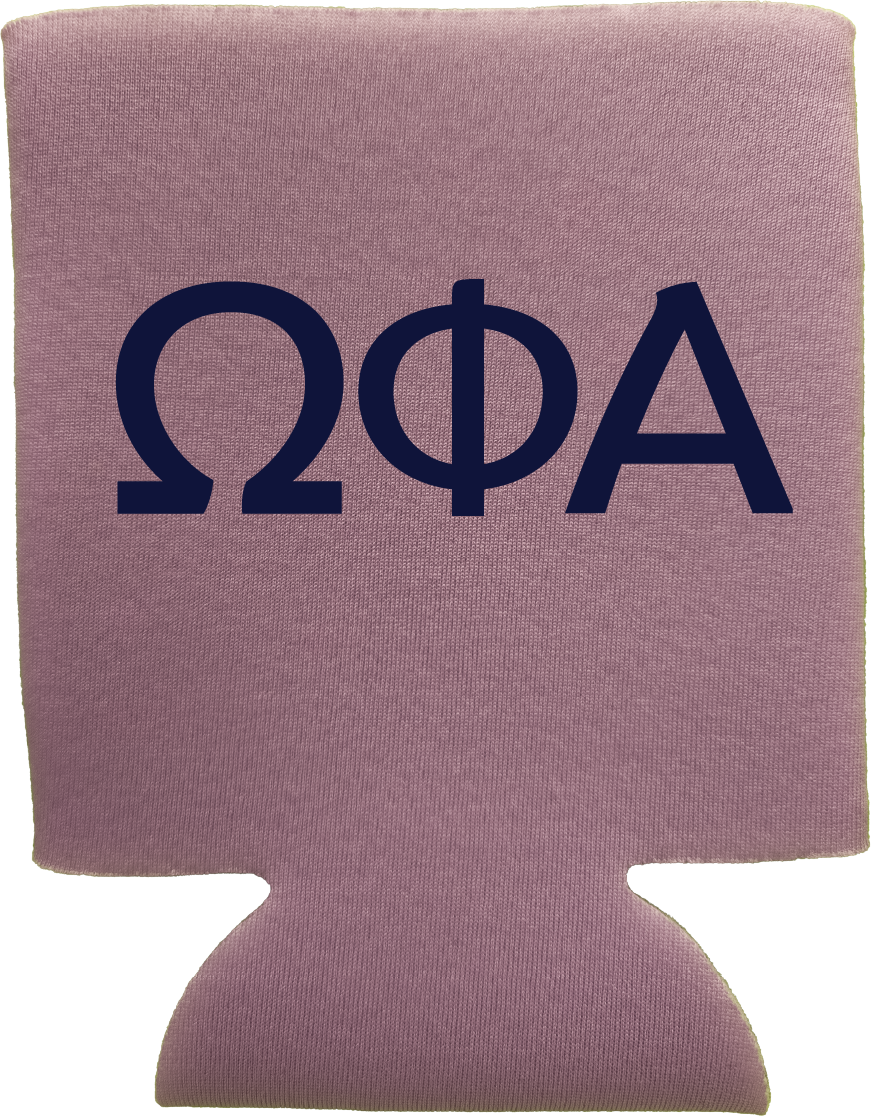 Keep your drinks icy cold with these can coozies branded with Omega Phi Alpha