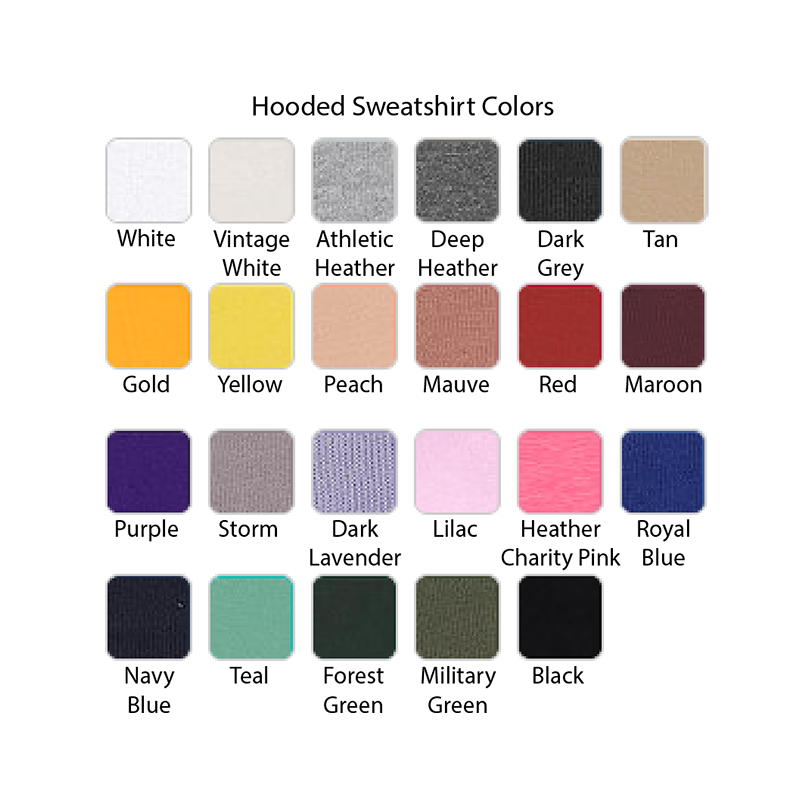Choose your apparel color and the color of the thread you would like us to use. If you don't see the color combination that you want, please let us know and we'll build an order for you.