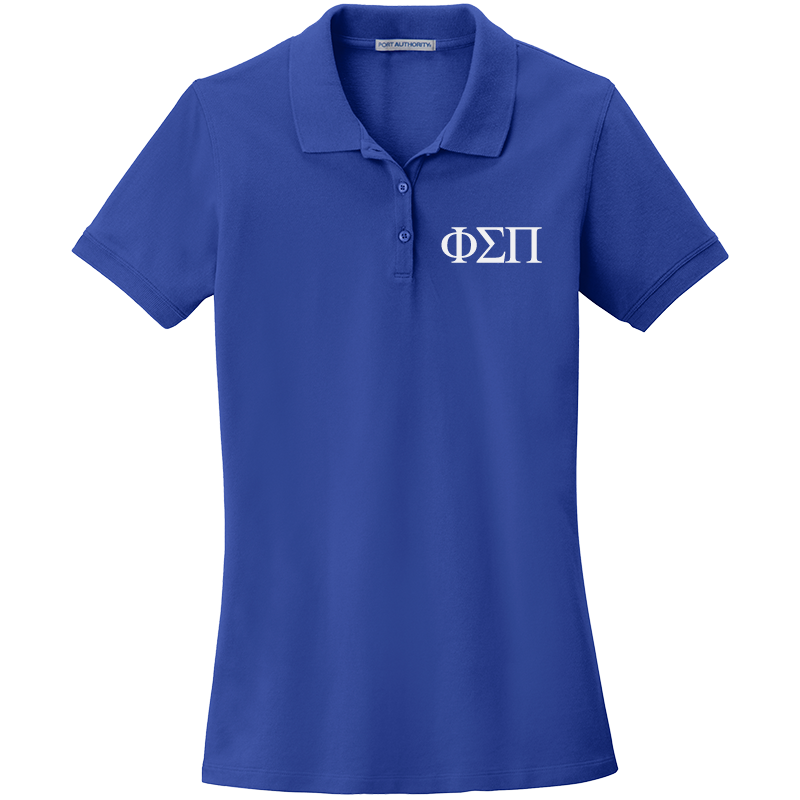 Look great everyday in an embroidered Phi Sigma Pi ladies' polo shirt.