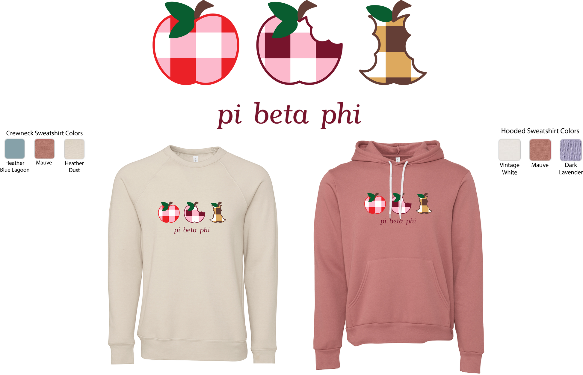 Soft cotton crewneck with embroidered apple detail. Made for Pi Beta Phi members who value simplicity and comfort.