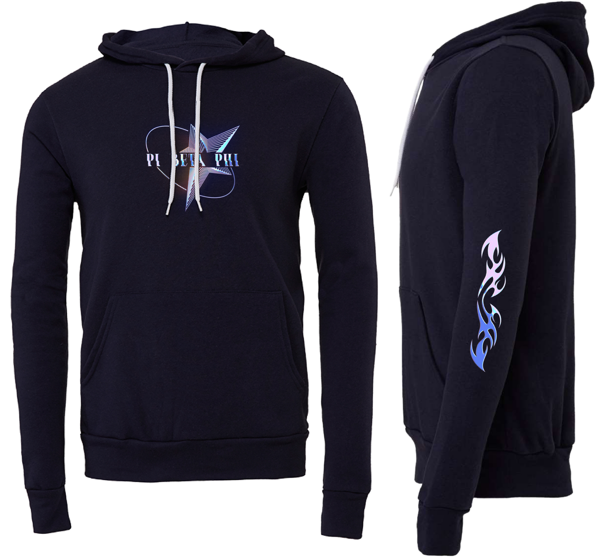 The Pi Beta Phi Pink Chrome Graphic Hoodie combines dark cotton comfort with sophisticated design. It features a starry pink chrome graphic on the front and a neo-tribal detail on the left sleeve’s elbow, offering a refined and stylish look perfect for elevating your casual wardrobe.