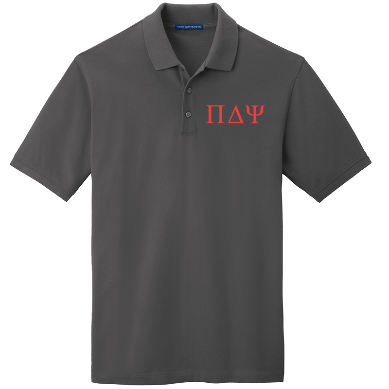 Look great everyday in an embroidered Pi Delta Psi men's polo shirt.