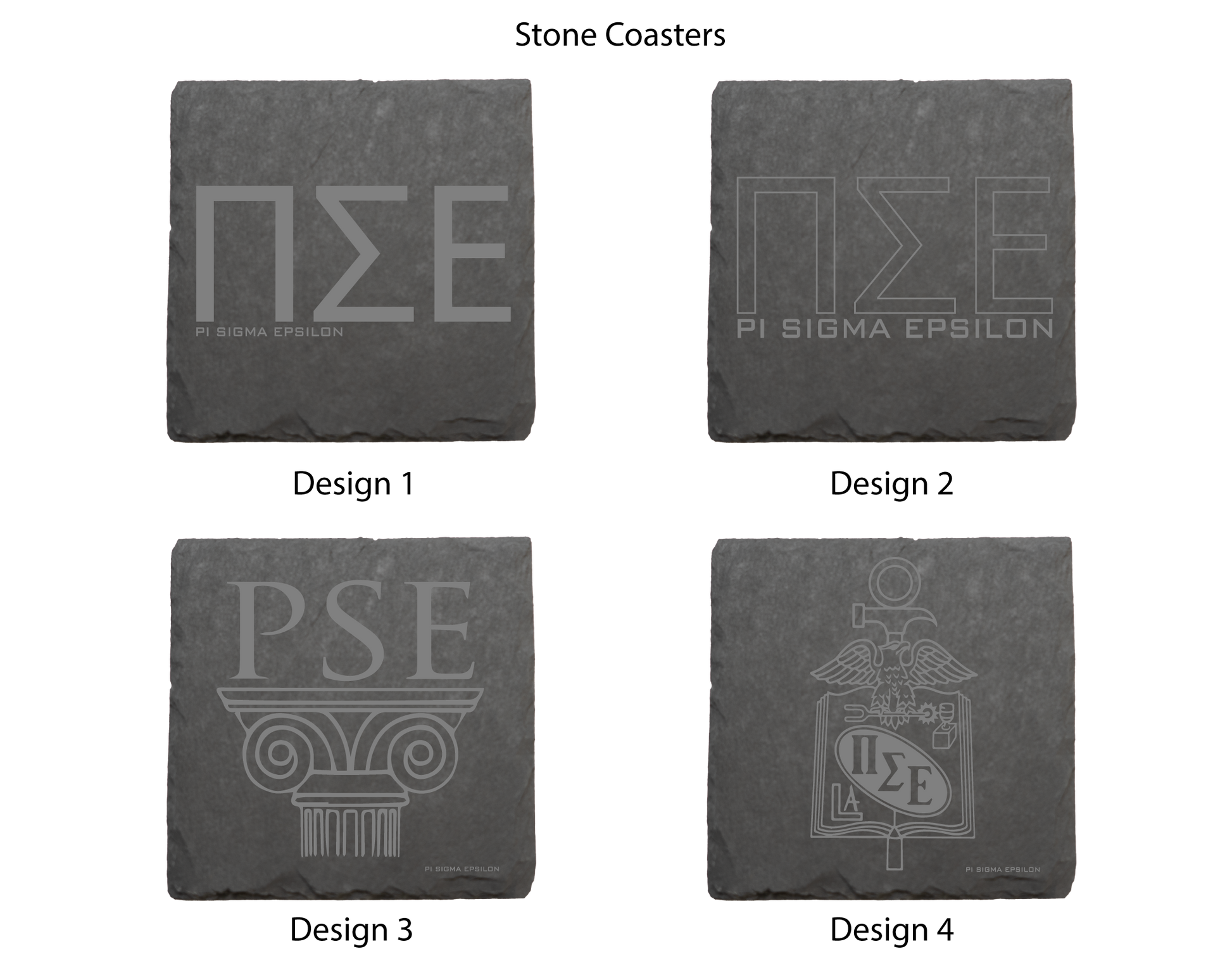 Protect your furniture while showing off your Pi Sigma Epsilon membership with this 4-pack of stone coasters.