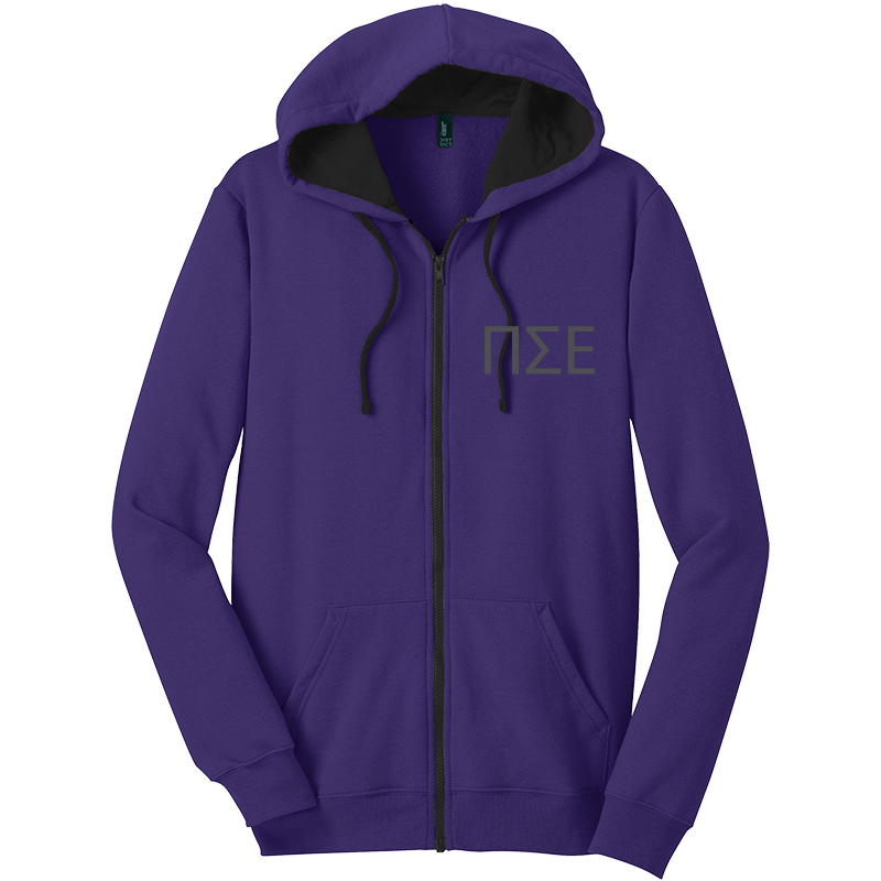 Stay warm in an embroidered Pi Sigma Epsilon Zippered Hoodie.