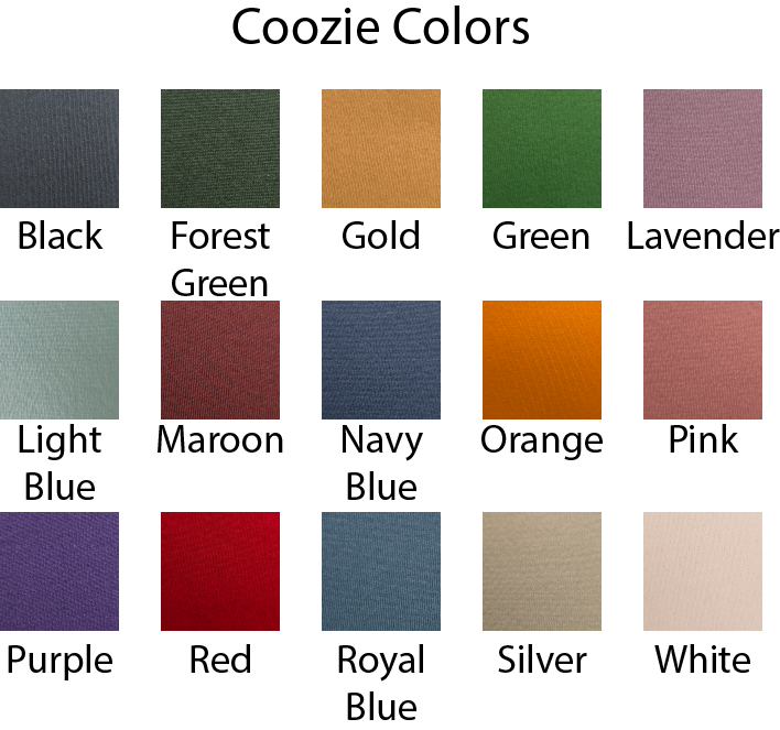 Choose your coozie color and the color you would like the decoration to be. If you don't see the color combination you want, just let us know!