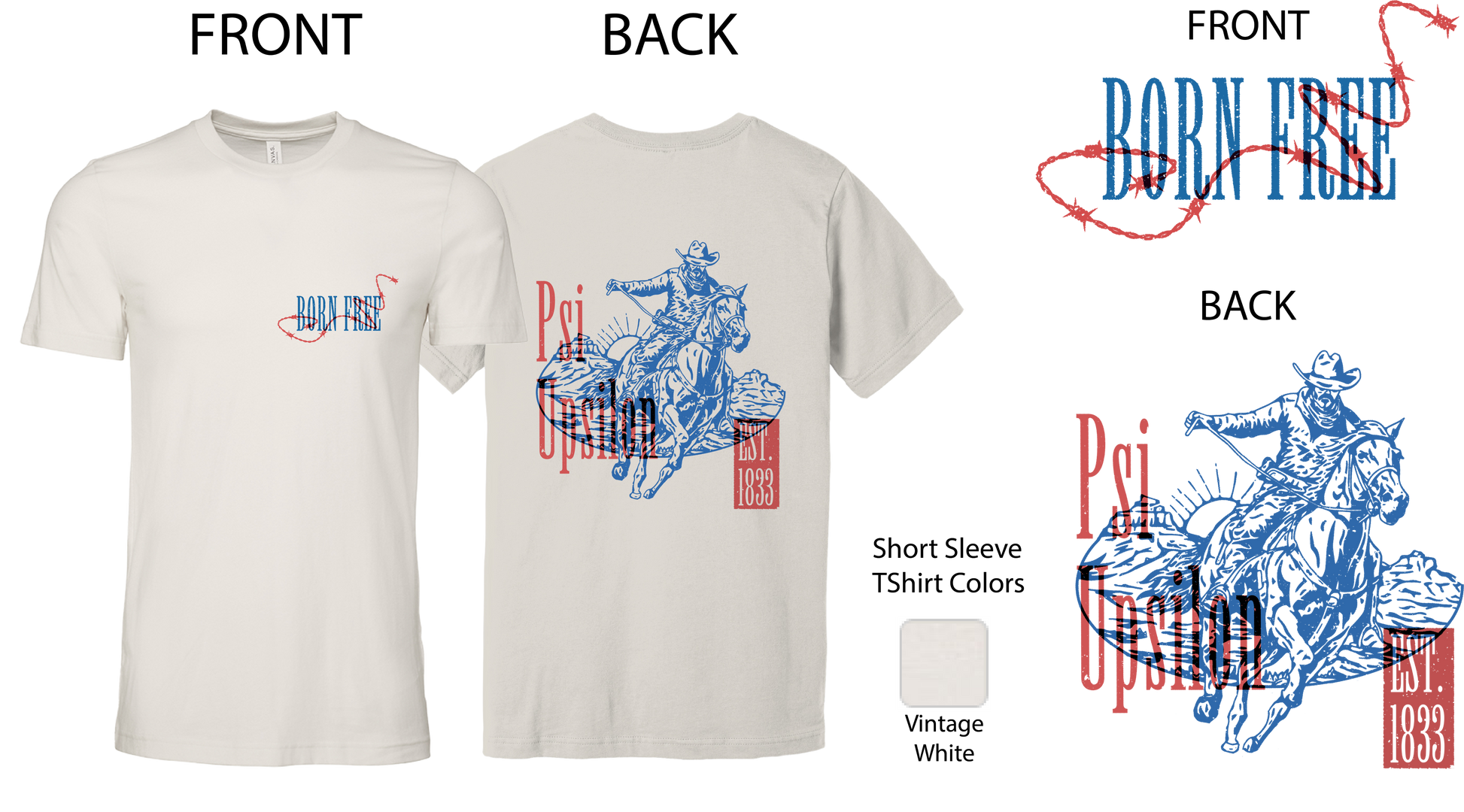 The Psi Upsilon Cowboy Graphic T-Shirt offers a sophisticated blend of collegiate pride and Western-inspired design. Made with quality materials for lasting comfort, this shirt features a tasteful cowboy graphic that embodies both elegance and a subtle rugged edge.