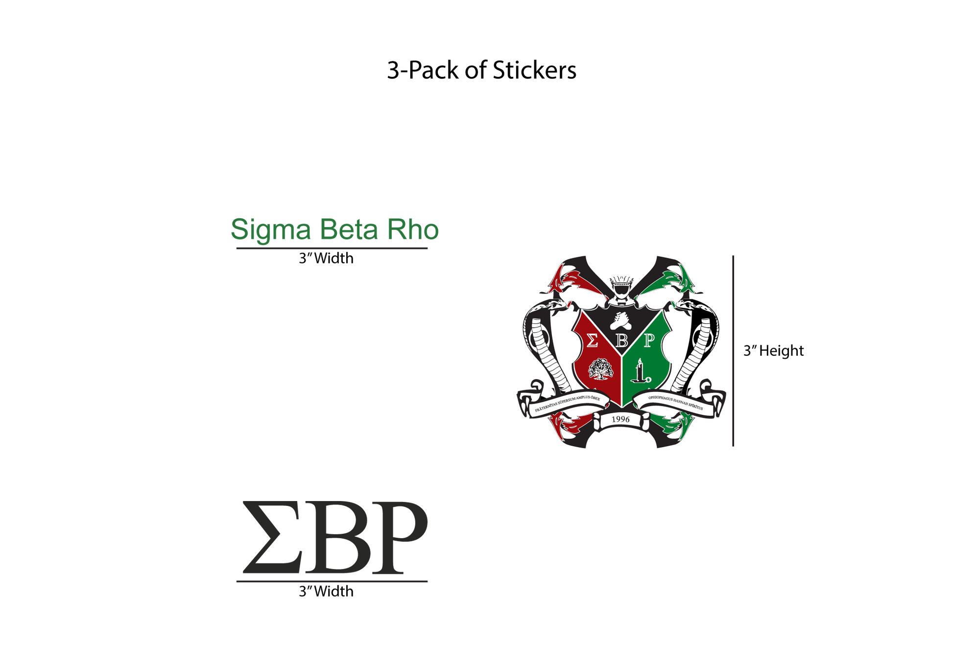 Decorate you laptop, water bottle, or anything else with these durable Sigma Beta Rho stickers. You get one of each of the 3" designs!