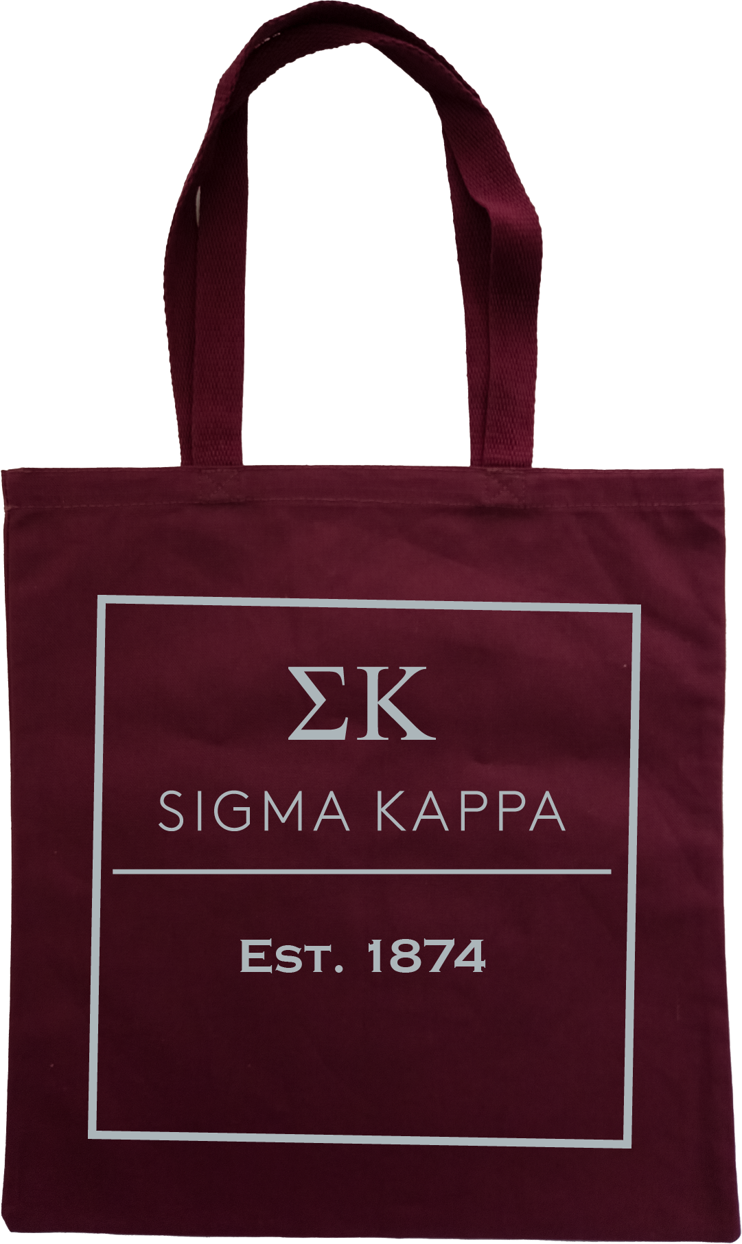 Carry your essentials in style with our durable Sigma Kappa tote bags.