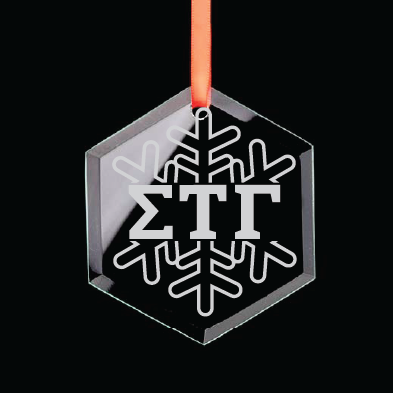 Showcase your Sigma Tau Gamma membership every year with this beautiful glass ornament. Each ornament is laser-etched with a snowflake and your organization's letters when you place your order.