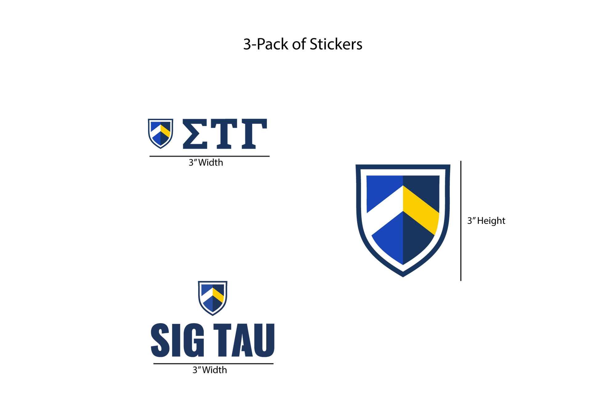 Decorate you laptop, water bottle, or anything else with these durable Sigma Tau Gamma stickers. You get one of each of the 3" designs!